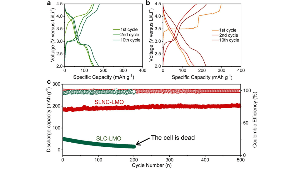 Wat betekent interfacial orbital engineering precies? Kort gezegd gaat het om het manipuleren van de elektronische banen (orbitalen) van mangaanatomen bij de interfaces van de cathodematerialen. Door zogenaamde ‘orbital geometric frustration’ toe te passen bij niet-collineaire interfaces, konden de onderzoekers voorkomen dat elektronen hun energie minimaliseren op een manier die de structuur zou destabiliseren. Het resultaat: de mangaanstructuur blijft stabiel, zelfs na honderden laad- en ontlaadcycli.