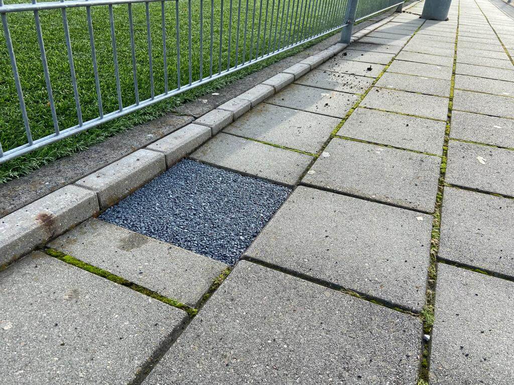 Het Waste Works Buffertrottoir is eveneens gemaakt van biobased, circulaire betontegels die 80 – 90% minder CO2 uitstoten bij de productie dan traditionele betontegels. Direct onder deze tegels ligt een innovatief en sterk krattensysteem dat tot 130 liter water per vierkante meter kan bufferen. Zo voorkomt het trottoir wateroverlast op straat. Regenwater stroomt langs de water passerende tegels het krattensysteem in, waar het water wordt geborgd. Vanuit het krat zakt het water dan langzaam de bodem in. Zo maakt het Waste Works Buffertrottoir van straten een soort sponsen die ervoor zorgen dat er geen wateroverlast is, dat bovendien de stad afkoelt en dat groen in de omgeving een voedzamere bodem heeft. Het trottoir is dus niet alleen circulair, maar ook klimaat adaptief.