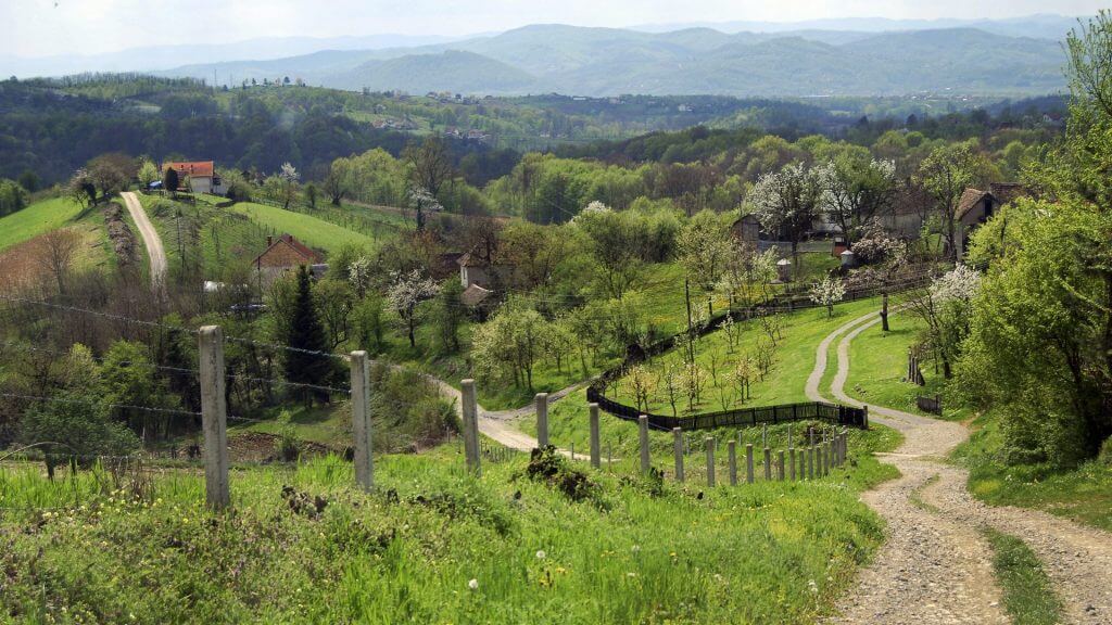 © IMAGO / Pond5 images. De Jadar vallei bij Loznica, vlakbij de Bosnische grens.