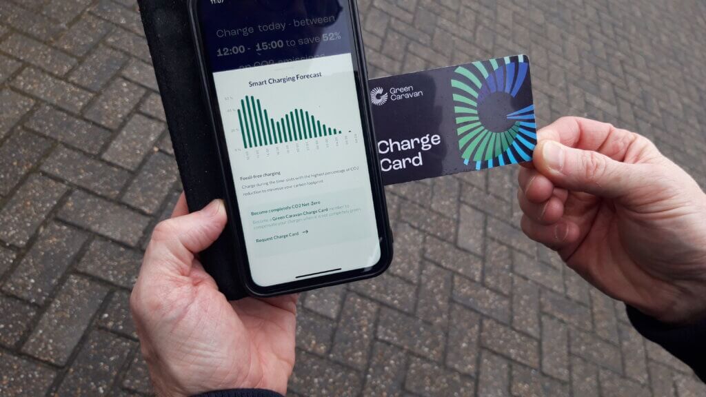 © Marc van der Sterren / Green Caravan. Green Caravan begon met de laadpas en app. Aan de hand van vraag en aanbod op het elektriciteitsnet, toont app op welk moment van de dag de CO2-emissies tijdens het laden het laagst zijn.