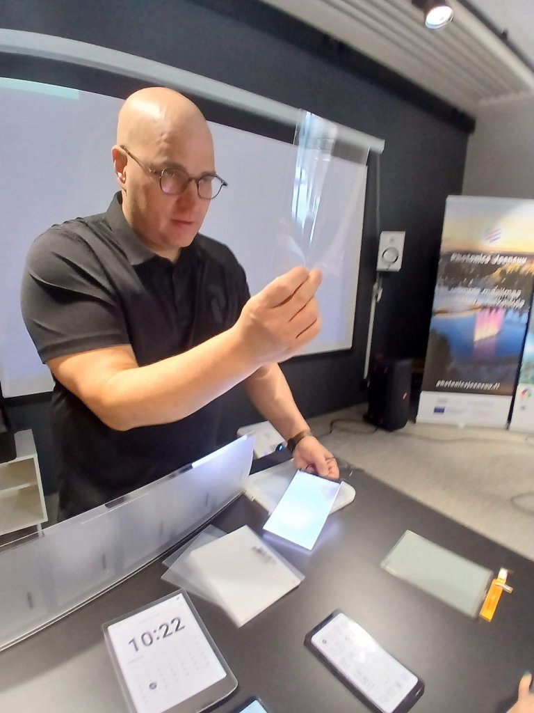 Nanocomb ontstond als eerste bedrijf vanuit de Universiteit van Oost-Finland in Joensuu, het is nu onderdeel van Radiant Opto-Electronics in Thailand. Nanocomb is wel een van de meest innovatieve groepen van het Thaise bedrijf, vertelt eigenaar Samuli Siitonen: ‘We moeten wereldwijd samenwerken om de beste mogelijkheden uit fotonica en optica voor allerlei applicaties te halen. We zijn gespecialiseerd in lichtgeleiders in e-books, in allerlei soorten en voor diverse toepassingen, zoals een privacyfilter, lichtgeleiders als decoratie en voor ondersteuning bij diverse sensorapplicaties. Met fabriekstechnologie om beeldjes op micro- en nanoschaal te produceren, gebruiken we lithografie dat weer van elektronische fabrikanten komt. Dit is vergelijkbaar met de semiconductor. Daarnaast creëren we microstructuren om de werking en de levensduur van de optische componenten te verbeteren. Die printen we uit met een soort printmachines, waardoor we de prijs extreem laag kunnen houden. Ze zijn zo klein dat het menselijk oog ze bijna niet kan zien. Daar hebben we speciaal elektronisch soort papier voor bedacht, zodat dit ook samen kan werken met andere technologieën en toepassingen.’