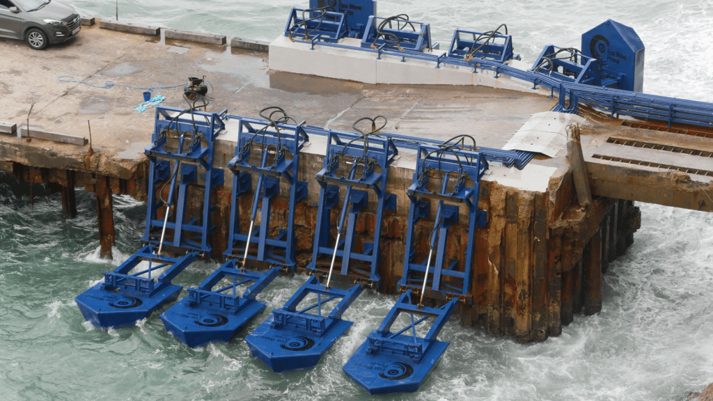 Waar eerdere golfenergieprojecten vaak strandden op onderhoudskosten en kwetsbaarheid, heeft Eco Wave Power gekozen voor een andere aanpak. Omdat de drijvers aan bestaande kades en golfbrekers worden bevestigd, zijn ze eenvoudig bereikbaar en goedkoper te onderhouden.