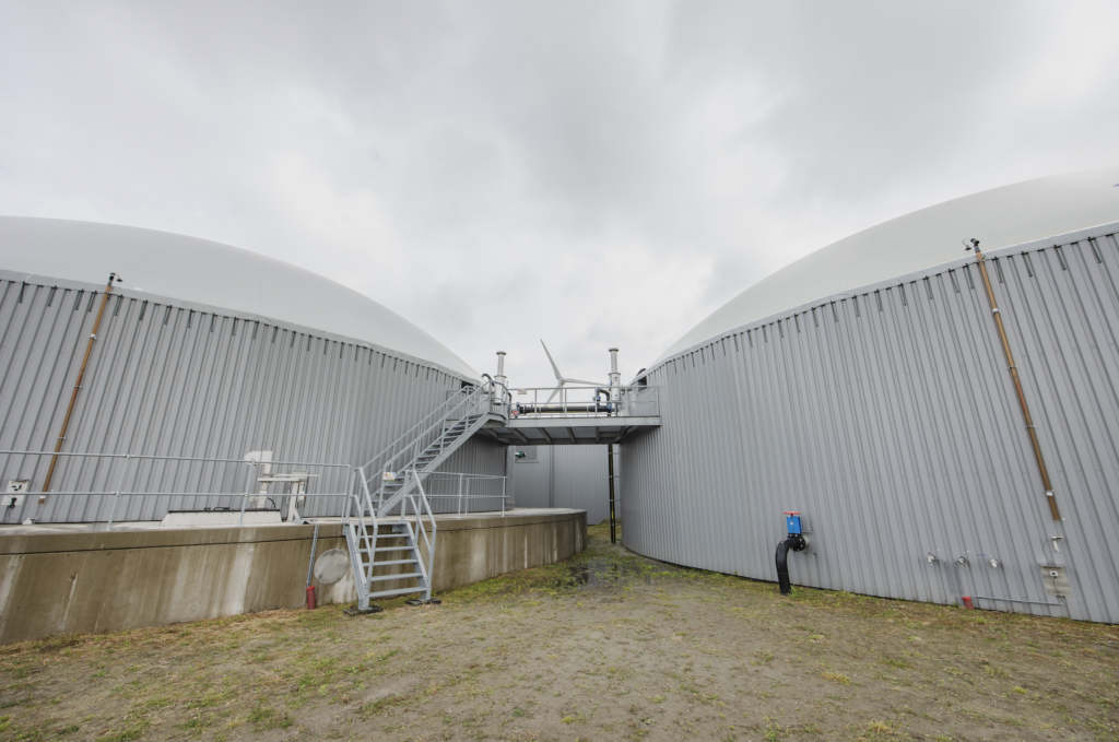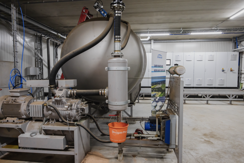 Afgelopen zomer opende ENGIE de deuren voor journalisten die een rondleiding en veel informatie kregen. In de bestaande gasinstallatie die ENGIE aankocht, worden stromen restafval (feedstock) omgezet in groen gas, ofwel biomethaan. Die reststromen worden door bedrijven uit de buurt aangeleverd die daar soms voor betalen en soms ook voor betaald krijgen, afhankelijk van het product. “We krijgen bijvoorbeeld de schil van uien binnen, die is niet geschikt voor consumptie door mensen of dieren”, legt Dave de Koster uit, hij is manager operations bij de installatie. “Maar het zijn ook vloeibare reststromen, zoals gebruikt frituurvet. De vloeibare stromen komen via een pijpleiding binnen, waar vrachtwagens op kunnen aansluiten.” Vaste producten liggen in bulken in verschillende hoeken in de ruimte naast de vergister, waarna de shovel ze in de mengtank deponeert voor de vergisting. Uit 1 ton biologische reststromenbio ontstaat gemiddeld 150 kuub biogas, op jaarbasis produceert de installatie een kleine 5 miljoen kuub gas.