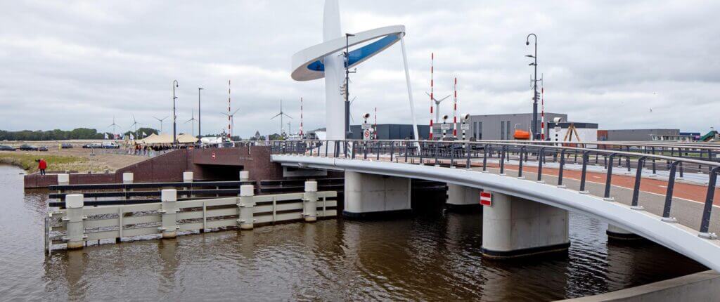 Het nieuwe landmark voor Urk is klaar! Op 1 juni vond de feestelijke opening plaats van de nieuwe Michiel de Ruyterbrug over de Urkervaart. Bruggenspecialist ipv Delft ontwierp de iconische beweegbare brug, waarvan balans en hamei doen denken aan een boetnaald, de naald waarmee vissers hun netten repareren.