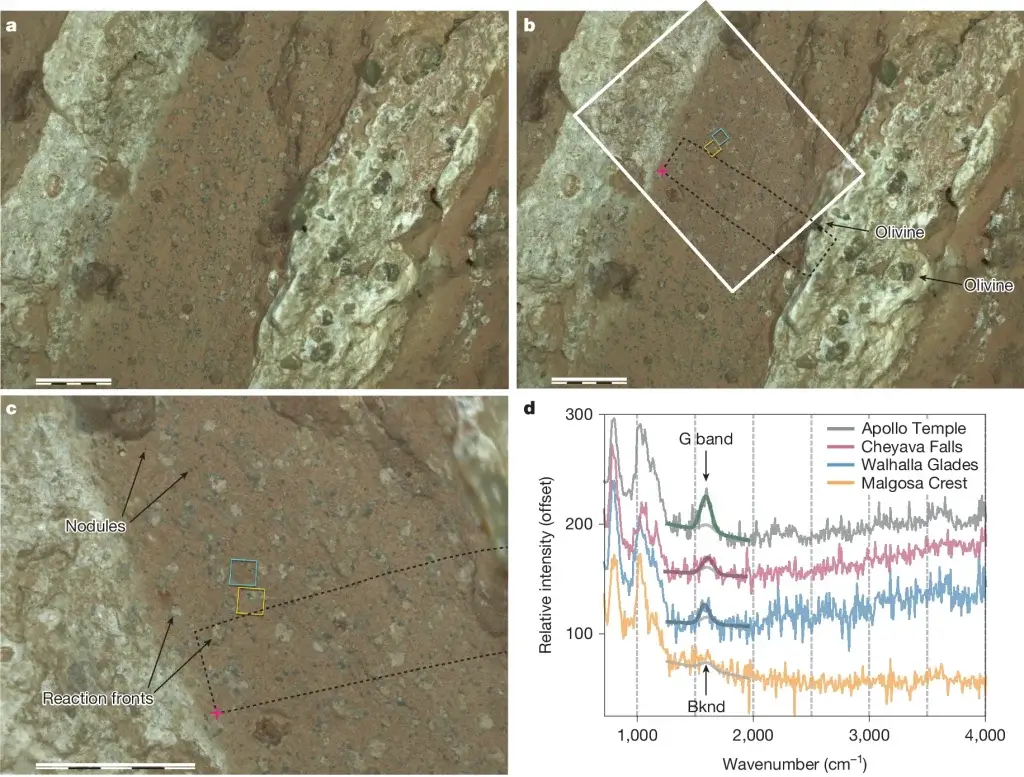 Perseverance detecteerde in het gesteente onder meer vivianiet (ijzer-fosfaat) en greigiet (ijzer-sulfide). Beide mineralen vormen zich op aarde vaak als bijproduct van microbiële activiteit. Ook werden organisch koolstof, zwavel, fosfor en geoxideerd ijzer gevonden – ingrediënten die een voedingsbodem kunnen vormen voor primitieve levensvormen.