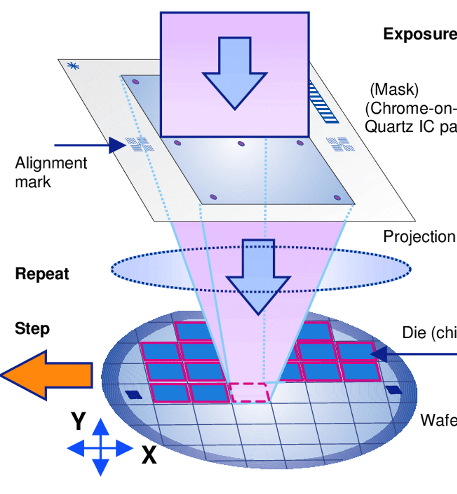 Een waferscanner (ASML begon met steppers, maar de huidige machines steppen en scannen; dat laatste is nu het dominante proces) is in wezen een projectiesysteem. De meest geavanceerde versie bestaat uit een lichtbron, een masker met het patroon van een elektronische schakeling, spiegels om de lichtstraal te richten, en een ronde silicium-schijf – een wafer – met een lichtgevoelige coating, die op een tafel ligt waarvan het blad stapsgewijs in x- en y-richting kan verschuiven.