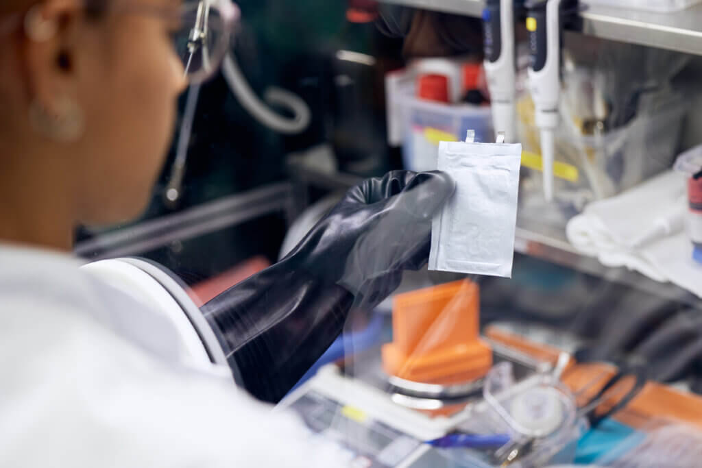 Een andere Nederlandse start-up die de technologiegiganten te slim af is, is LeydenJar. Het bedrijf ontwikkelt en produceert specifiek een anode van silicium. Silicium kan tien keer meer energie opslaan dan het gebruikelijke grafiet. De Leidse start-up, in 2016 opgericht door Christian Rood en Gabriël de Scheemaker, ontwikkelde een proces en apparatuur dat silicium in een extreem dunne laag van 10 micron op koperfolie aanbrengt. Dit proces heet PECVD: Plasma Enhanced Chemical Vapour Deposition, vertelt Tim Aanhane van LeydenJar. “Het silicium wordt direct op het koperfolie ‘gegroeid’ door het – in plasma – in een vacuüm met de koperfolie te brengen. Onze 100% silicium anode geeft batterijen een 70% hogere energiedichtheid.”