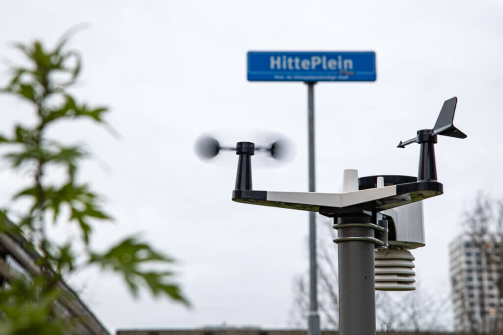 Op het HittePlein is een innovatief ontwerp toegepast. Door gebruik te maken van een donkere ondergrond, zoals zwarte tegels, die taps toelopen, kan een briesje ontstaan op windstille dagen. ‘Volgens de theorie trekken de zwarte tegels hitte aan, door ze taps toe te laten lopen kan dat een briesje op gang brengen die als natuurlijke verkoeling werkt, hoe klein ook. Of dat ook zo in de praktijk werkt, testen we hier. Daarnaast doen we onderzoek met bomen; welke bomen hebben het minste water nodig en welke bomen verdampen het meeste waardoor ze bijdragen aan verkoeling. Dat soort bomen hebben we in de stad nodig. Zeker over dertig tot veertig jaar, wanneer het heter en droger zal zijn in de stad. Als je die bomen nu al plant, zijn ze tegen die tijd van groot nut.’