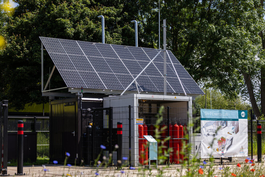 Energie opslaan en bewaren tot een later moment, is wat ze proberen in de Energy Hub. ‘We zien dat de meeste energie in de avond gebruikt wordt, dat is echter niet het moment waarop de duurzame energie opgewekt wordt. Daarom is opslag belangrijk, ook voor de warmte van de zomer voor de kou van de winter.’ Hierbij wordt gebruikgemaakt van het Seasonal Storage System, dat als een soort ‘seizoensbatterij’ fungeert waarin energie voor de lange termijn wordt opgeslagen in de vorm van waterstof. Dit test The Green Village in de praktijk, om veel te kunnen leren over het systeemgedrag en de componentinteracties. ‘Daarnaast onderzoeken we de gezondheids- en veiligheidsaspecten en de vergunningen die hiervoor nodig zijn.’