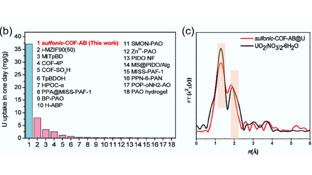 Dr. Tai beschrijft het als “stacking mode engineering” – een ontwerpstrategie waarbij de laagjes zo worden gepositioneerd dat uraniumionen precies passen in een ‘vak’ dat aansluit op hun bindingsvoorkeuren. Het team koos voor een AB-stapeling, waarbij sulfonische groepen een nauw omsloten pocket vormen die uranium via vierpuntscoördinatie vasthoudt. Dit in tegenstelling tot de traditionele AA-stapeling, die veel minder selectief en zwakker bindt.