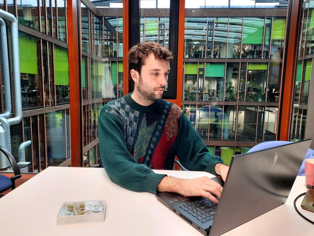 Lucas van der Zee houdt er een futuristisch wereldbeeld op na van een landbouw zonder fotosynthese. Een productiemethode waarbij groenten, fruit en granen, kunnen groeien zonder licht. In een rode laboratoriumjas toont hij een schaaltje waar kleine tomaatjes op een voedingsbodem groeien. “Zonder fotosynthese hebben die tomaten geen plant nodig”, verklaart hij. “In elk geval niet voor de energiebehoefte. We zijn nog bezig te bewijzen dat ze helemaal geen plant nodig hebben, maar dat staat nog niet honderd procent vast.”