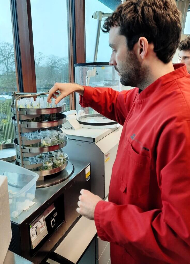In het lab van Wageningen UR groeien de vruchtjes op een voedingsbodem van stikstof, fosfaat, kalium en andere micronutriënten die cruciaal zijn voor processen zoals eiwitsynthese, celstructuur en enzymatische functies. En natuurlijk suiker. Glucose, of sucrose. “Ik gebruik rietsuiker”, verklapt de promovendus. “Dat is de energie en de bouwstof.”